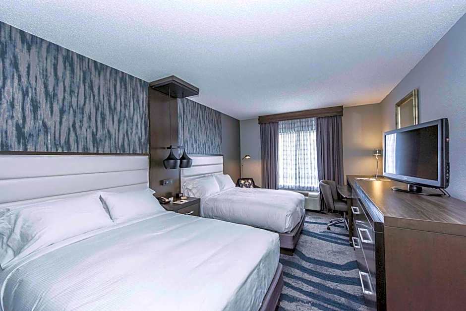 This room features a microwave, small refrigerator, and a Keurig® coffeemaker. A flat-screen HD TV is provided.